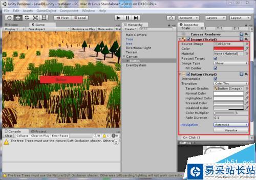 3、在“Image (Script)”與“Button(Script)”中可以更詳細的設置按鈕的顏色等效果。