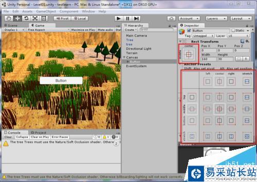 2、在“Rect Transform”下可以改變按鈕的布局位置大小等。