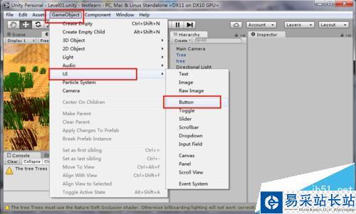 1、打開unity3d項目“GameObject”--“UI”--“Button”,創建一個按鈕。