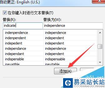 1)若要添加新詞目,輸入拼寫錯誤的單詞及其正確的版本,點擊添加。