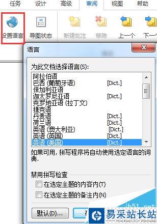 拼寫檢查字典語言取決于文檔語言,若要更改當前導圖的語言,在審閱選項卡上,驗證組里,點擊設置語言。