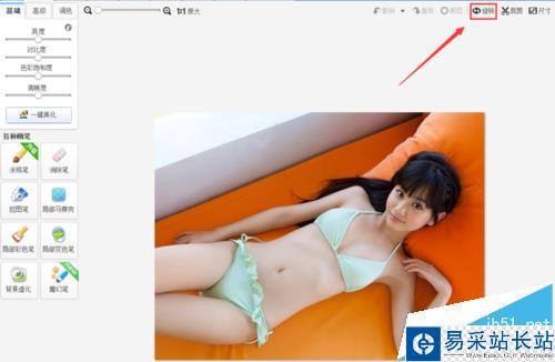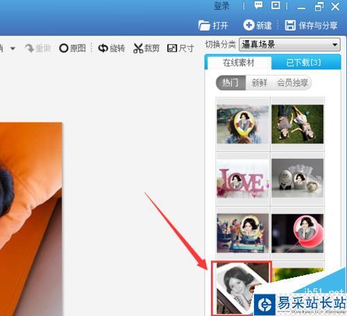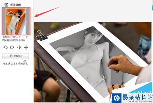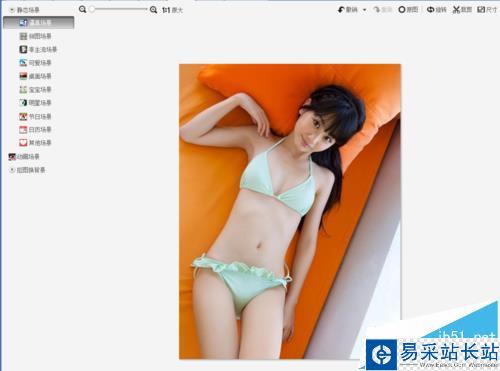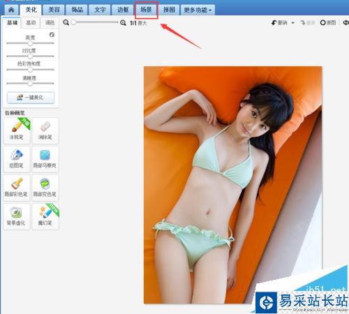 8、點(diǎn)擊完成旋轉(zhuǎn),進(jìn)入圖片編輯界面,在上面的菜單里找到場(chǎng)景選項(xiàng),如圖所示: