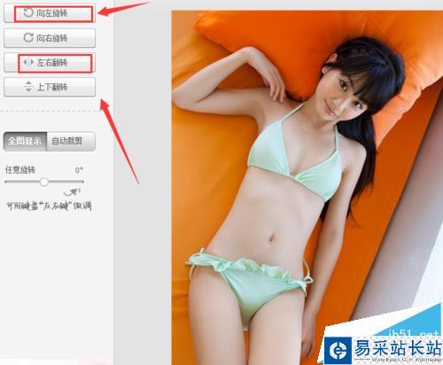 7、在該對(duì)話框內(nèi)我們選擇向左旋轉(zhuǎn),和左右旋轉(zhuǎn),將圖片旋轉(zhuǎn)到我們需要的狀態(tài),如圖所示: