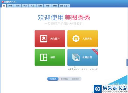 1、打開(kāi)美圖秀秀這款軟件,進(jìn)入美圖秀秀的操作界面,如圖所示: