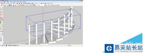 點擊橡皮工具擦去多余的線條;全選(ctrl+A),右鍵單擊形成組件;選中組件,點擊旋轉工具(Alt+R),按(ctrl)加選;旋轉一定角度(使新生成的直邊和原組件直邊重合),輸入x8;形旋轉樓梯的俯視圖。
