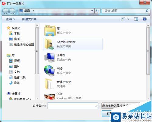 3、點擊打開選項后,彈出打開一張圖片對話框,如圖所示: