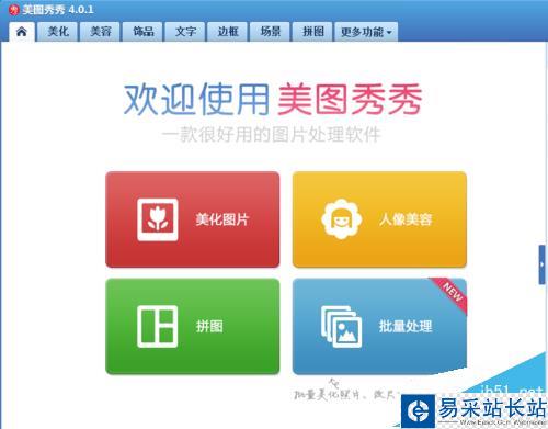 1、打開美圖秀秀這款軟件,進入美圖秀秀的操作界面,如圖所示: