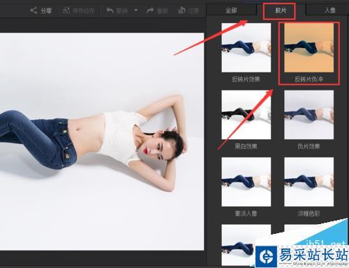 6、點(diǎn)擊數(shù)碼暗房選項(xiàng),在數(shù)碼暗房的選擇區(qū)域里找到膠片選項(xiàng),在膠片里找到反轉(zhuǎn)負(fù)沖選項(xiàng),如圖所示:
