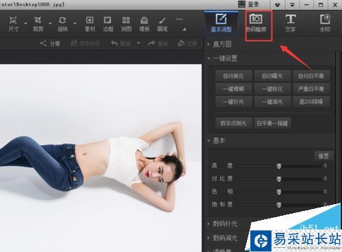 5、在這個(gè)編輯操作界面的右上側(cè)找到數(shù)碼暗房選項(xiàng),如圖所示: