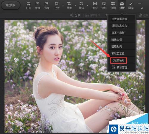 6、點擊模板選項,在其子級菜單里找到記憶的色彩選項,如圖所示: