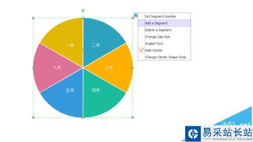 4、選中圓形圖,鼠標右鍵選擇“Add a Segment”,添加圖形的劃分模塊,如下圖所示: