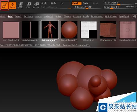 1、打開ZBrush軟件,隨意找到一個模型,Tool菜單下的PolySphere.ZTL在畫布位置任意拖拽多次,得到如圖所示的效果