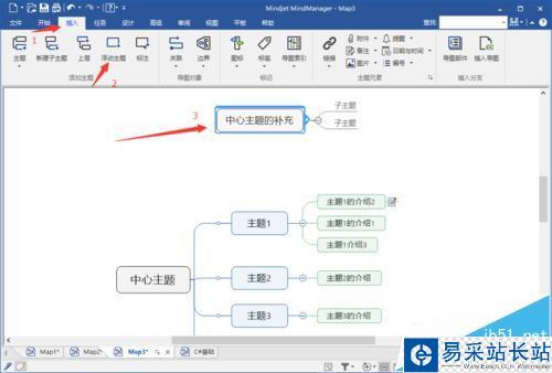 6、浮動(dòng)主題的添加:有時(shí)候在做思難導(dǎo)圖的時(shí)候會(huì)可能要記錄一些與中心題主題相關(guān)不大但又很重要的想法或其他思路,些時(shí)就可以用到浮動(dòng)主題,在菜單欄的插入選項(xiàng)中選擇浮動(dòng)主題即可,如下圖: