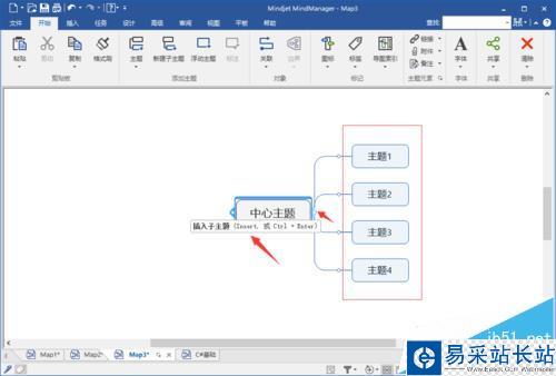 2、創(chuàng)建中心主題:對(duì)要選擇的模板雙擊創(chuàng)建進(jìn)入編輯界面,系統(tǒng)默認(rèn)會(huì)生成一個(gè)中心主題,這時(shí)你可以雙擊主題內(nèi)將里面狀態(tài)轉(zhuǎn)為可編輯狀態(tài)更改成你自己的中心主題