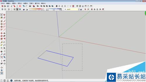 拖動鼠標,從左側往右拉,只有完全在方框內的線條才能選中,方框外的則無法選中。