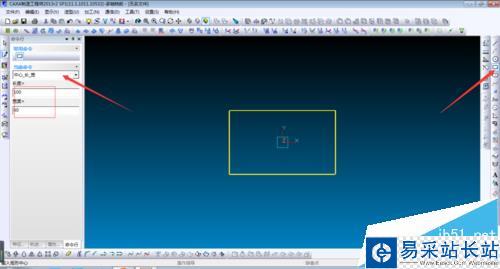 1、首先打開CAXA制造工程師,進入特征欄,選擇XY平面,點擊進入草圖,選擇矩形繪制,使用方法為中心和長度,繪制一個如圖所示的矩形。