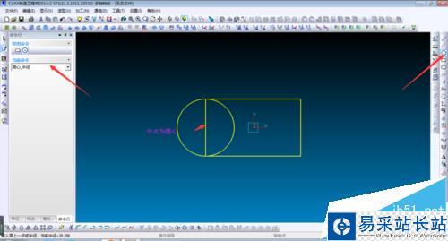 2、再選擇圓命令,以矩形寬度線中心為圓心,繪制一個半徑為30的圓。完成后選擇曲線修剪和刪除,裁剪掉多余的線段,最后效果如圖。