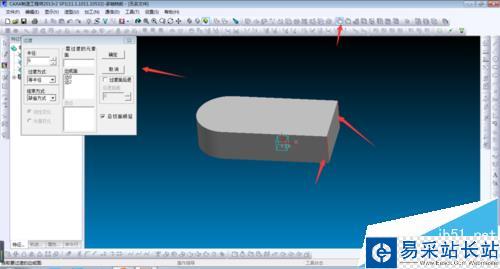 6、這些特征完成后,再次選擇過渡命令,對上表面周邊進行倒圓角處理,圓角半徑為3。完成后確定退出。效果如圖。