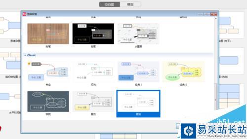 2、點擊“思維導圖”空白圖,打開“選擇風格”彈窗,這里選擇“簡潔”風格,如下圖所示: