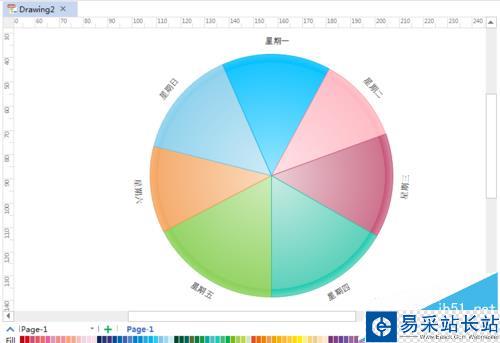 Edraw Max是一款基于矢量圖的工具,包括大量的模板和實(shí)例。下面利用自帶元素設(shè)計(jì)出星期圖,如下圖所示: