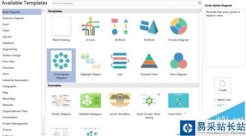 2、在模板中選擇“Circle-Spoke Diagram”,然后單擊“Create”,如下圖所示: