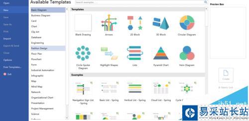1、打開Edraw Max工具軟件,然后依次操作“New---Basic Diagram”,選擇模板,如下圖所示: