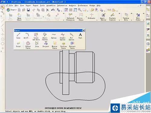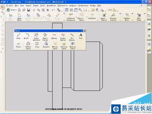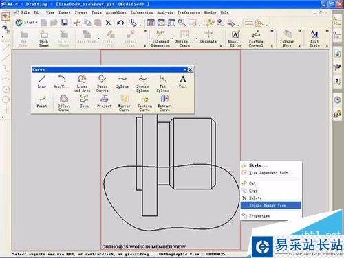 4、選擇“Expand Member View”后的界面,左視圖被放大至充滿繪圖窗口。調(diào)出“Curve”工具欄。