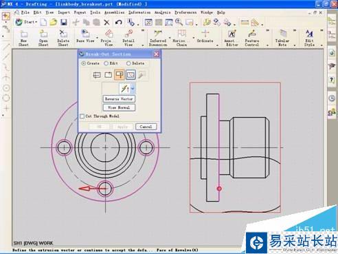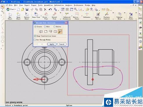 7、從“Drawing Layout”工具欄中選擇“Break-out Section(局部剖視圖)”。