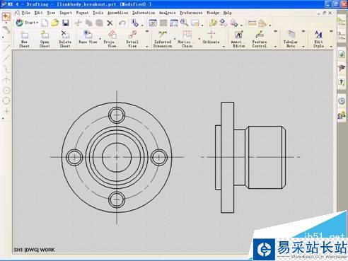 2、進入Drafting環(huán)境,創(chuàng)建零件的主視圖和左視圖。