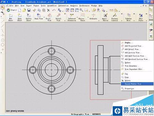 6、再次選擇左視圖,單擊鼠標(biāo)右鍵,選擇“Expand Member View”,退出對視圖的編輯。