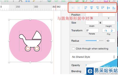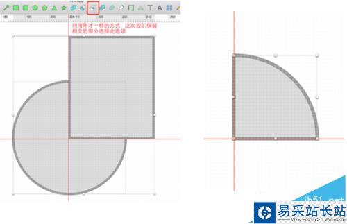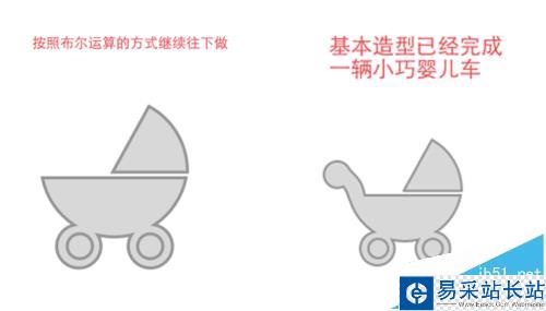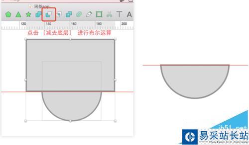 3、畫一個矩形工具放在圓形中心上方,用矩形減去一般圓形,和ps/ai一樣的布爾運算方法,得出嬰兒車的車兜。