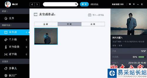 5.在“未完成”分類,點擊選擇要創作的圖解,可以在右側查看此作品的相關創作信息,并對作品進行編輯、刪除、導出和上線的操作。