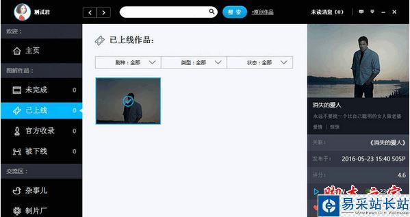 7.在“已上線”的分類,可以對已經提交上線的作品的信息進行下線和催審等操作。