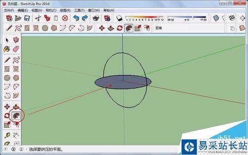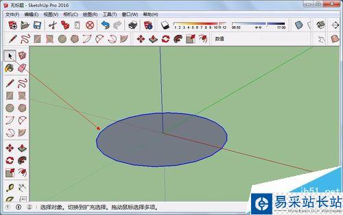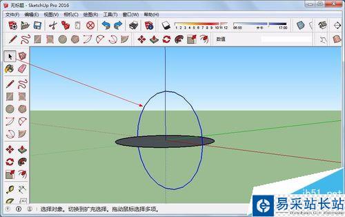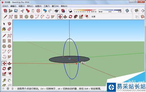 4、用旋轉工具將邊框旋轉到豎直方向,并將其移動到與圓面端點重合。