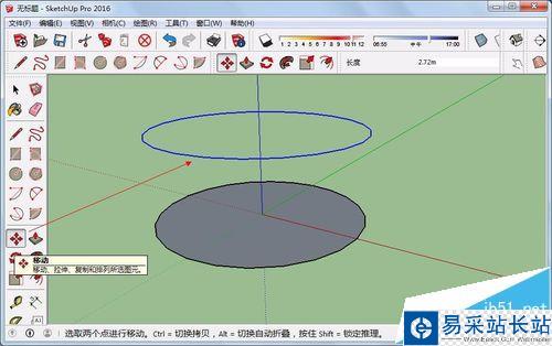 3、按住Ctrl,用移動工具將其移動到圓上方。