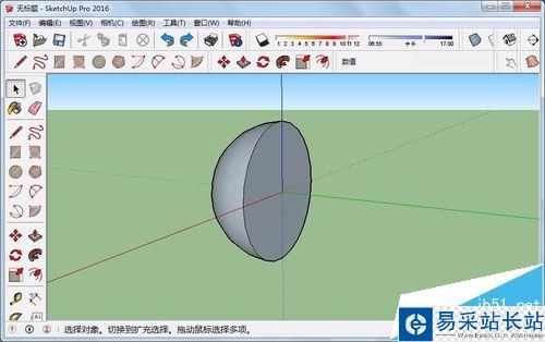 6、將這個圓的一半刪除,并填補底面,再將其旋轉到水平狀態。