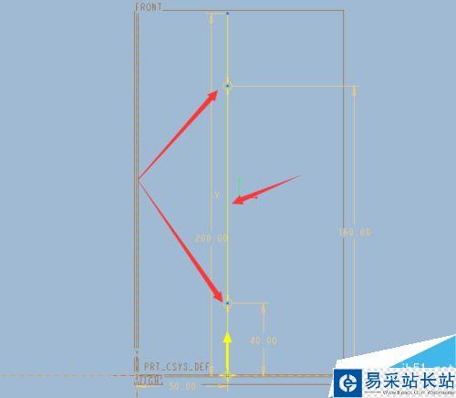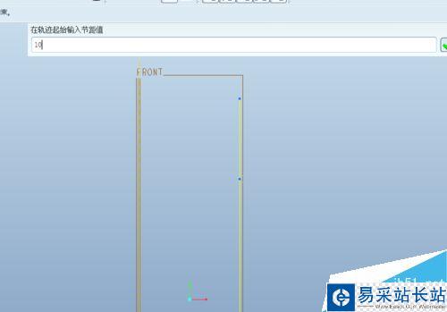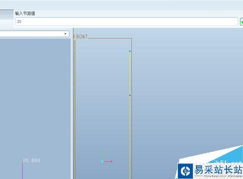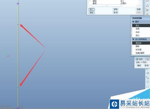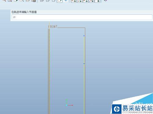 4、按軟件的操作提示,進入到草圖界面,繪制一中心線及一條路徑線(豎直的線),由于我們要使用可變螺距,記得要在路徑線上畫點,如圖,我是在線上增加了兩個點;(此步非常的重要,此兩點是輸入可變螺距的點)