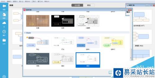 2、點(diǎn)擊“樹(shù)狀圖(向左)”,彈出選擇風(fēng)格窗口,這里選擇經(jīng)典中的“簡(jiǎn)潔”風(fēng)格,如下圖所示: