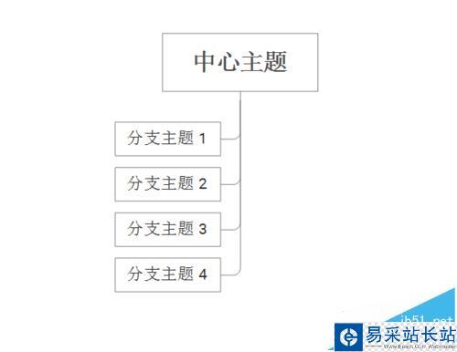 4、在中心主題后插入四個(gè)主題,描述分別為分支主題1、2、3和4,如下圖所示: