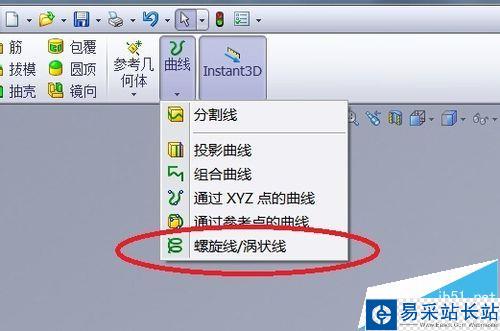 2、貼著需要生成滾花的面,做一條螺旋線,首先找到螺旋線命令