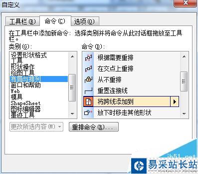 4、拖拽跨線工具:同樣的方法找到“將跨線添加到”,拖拽到相應(yīng)的工具欄位置,然后關(guān)閉就可以了。就會(huì)出現(xiàn),上述的工具了。