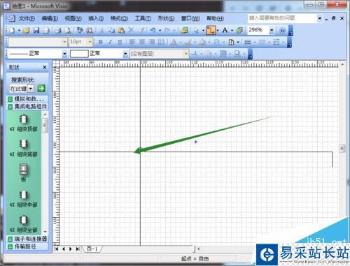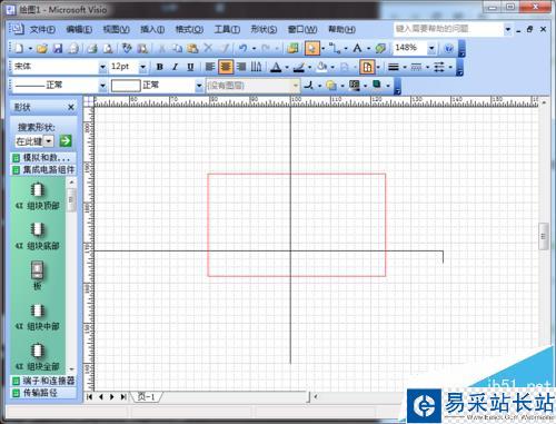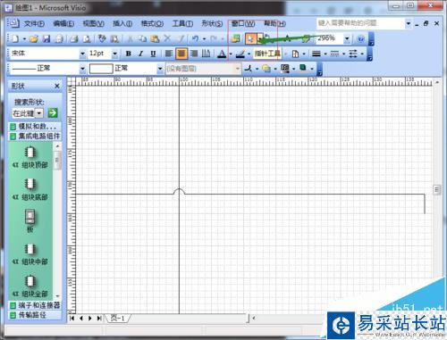1、打開工程:打開我們Visio工程,如圖所示界面,我們會(huì)看到在交處出現(xiàn)了彎折;