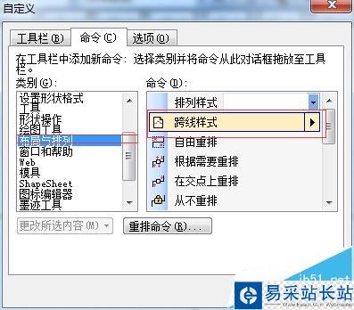 3、找到工具:在類別一欄中選中“布局與排列”,然后將“跨線樣式”拖拽到工具欄;