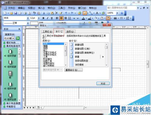 2、找到命令:在界面中,選中“命令”選項(xiàng)卡;
