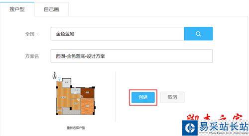 4、找到您需要的戶(hù)型圖,“選擇”戶(hù)型圖—點(diǎn)擊”創(chuàng)建“即可進(jìn)入工具頁(yè)面。