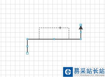 2、選中該連接線,把鼠標(biāo)指針?lè)旁谠摼€的某中點(diǎn)上,按住Shift鍵進(jìn)行拖拽。這樣就增加了4個(gè)直角拐彎。