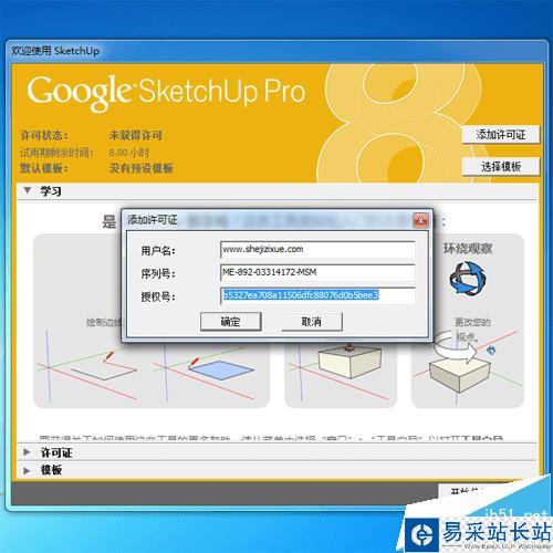 1、點擊歡迎界面中的添加許可證,輸入注冊機算出來的許可證號。找了個可以用的號請看最下方參考資料。