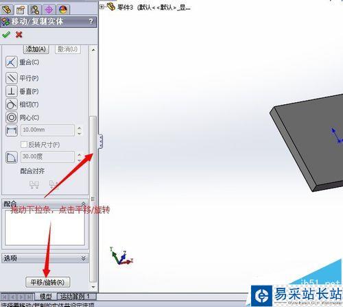 4、接下來,拖動下拉條,選中“平移/旋轉”選項。