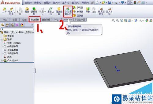 3、在工具欄中,點擊“數據遷移”,然后點擊“移動/復制實體”,若是工具欄中沒有顯示“數據遷移”一欄,請按照下面第二張圖所示調出來。