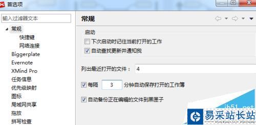 2、XMind 7自動保存功能位于首選項中,即打開XMind 7界面的左下角,也就是說在使用:XMind 7繪制思維導圖之前就可以進行設置,以防意外發生導致導圖來不及保存: